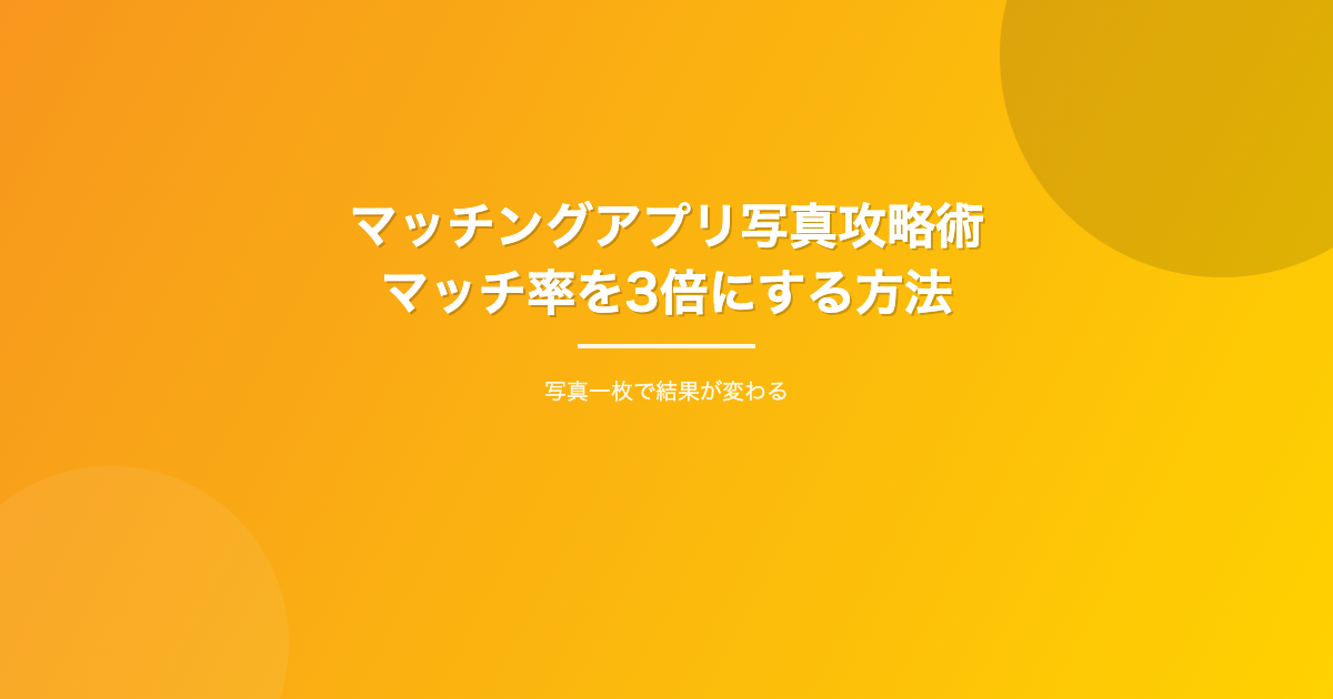 逆に言えば、写真を改善するだけでマッチ率は劇的に上がります。今日から実践できる写真攻略術を解説します。