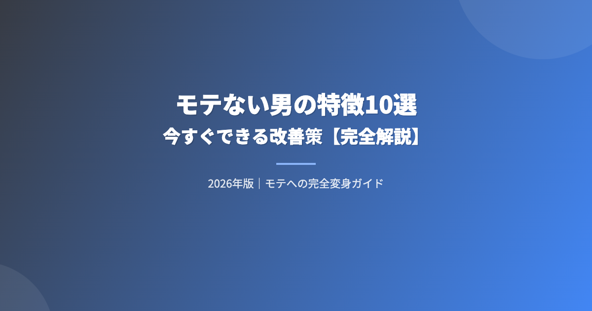 この記事では、モテない男の特徴10選を解説しながら、それぞれの具体的な改善策も合わせて紹介する。耳が痛い話もあるかもしれないが、正直に向き合うことが成長への近道だ。